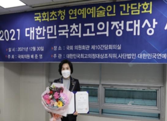 [한국뉴스타임=편집국] 경기도의회 안전행정위원회 한미림 의원(국민의힘, 비례)이 30일 14시 국회의원회관 제10간담회실에서 열린 '2021 대한민국최고의정대상 시상식'에서 의정대상을 수상했다.