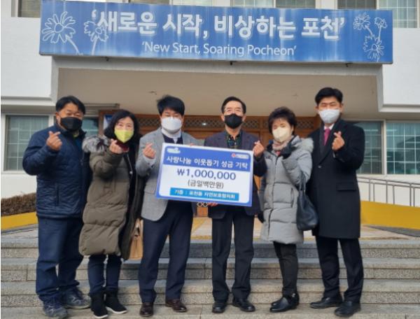 [한국뉴스타임=편집국] 포천동 자연보호협의회는 지난 29일 연말을 맞아 관내 저소득층에 전달해 달라며 이웃돕기 성금 100만원을 사회복지공동모금회를 통해 기탁했다.