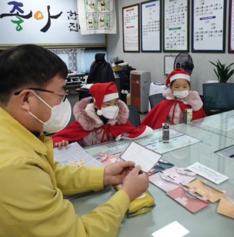 [한국뉴스타임=편집국] 하남 시립대명루첸어린이집은 지난 29일 어려운 이웃을 위해 원아들이 고사리손으로 쓴 손편지와 성금 50만원을 신장2동 행정복지센터에 기탁했다.