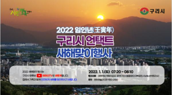 시는 최근 코로나19 신규 확진자 폭증 및 오미크론 변이 확산 등 방역상황을 고려하여, 2022년 1월 1일 구리시 공식 유튜브 채널인 '해피GTV-구리시'를 통해 오전 7시 47분에 예정된 아름다운 해돋이 장면과 ‘새해를 여는 안승남 구리시장의 타북 및 새해 덕담’을 현장 생중계할 예정이다.