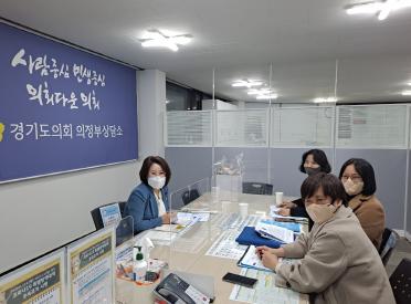 [한국뉴스타임=편집국] 경기도의회 교육기획위원회 최경자도의원(더민주, 의정부1)은 지난 29일 경기도의회 의정부상담소에서 경기도보건교사회 회장 천아영(고양·신일초), 보건교사 김명인(파주·송화초), 권은숙(고양·성신초) 등 관계자들을 만나 코로나19로 어려운 상황에서 업무 수행의 애로사항을 청취하고 현안에 대해 논의하는 시간을 가졌다.