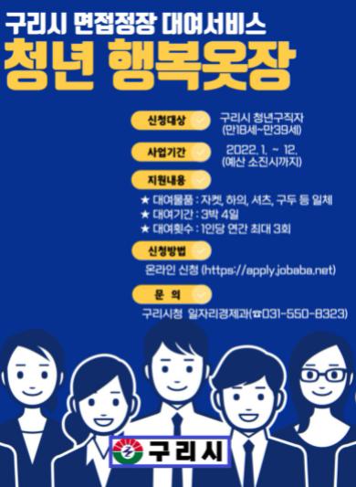 [한국뉴스타임=편집국] 구리시는 3일부터 청년 맞춤형 정책의 일환으로 청년구직자에게 면접 정장을 무료 대여해주는 ‘구리시 청년 행복옷장’사업을 추진한다.