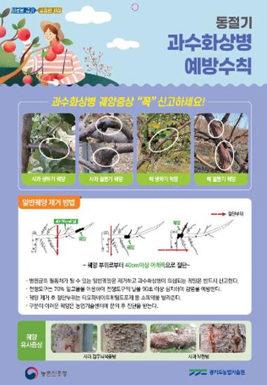 김석철 경기도농업기술원장은 “과수화상병 발생 예방을 위해 겨울철 과원 관리가 중요한 만큼 전정 작업 등에서 의심 증상이 보이면 바로 신고해 주길 바란다”고 말했다.