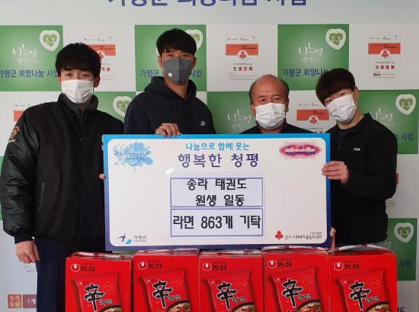 이번 기탁은 청평 송라 태권도 원생들이 십시일반 모아 기탁한 물품으로 청평면 저소득 이웃과 동절기 식사 취약계층에게 전달 될 예정이다.