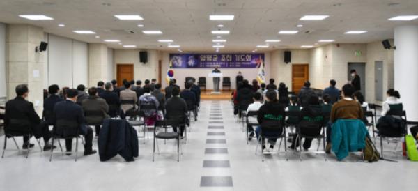 [한국뉴스타임=편집국] 지난 4일 오전 양평군청 대회의실에서 양평군기독교연합회 주관으로 2022년 신년 조찬 기도회가 열렸다.