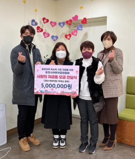 매년 포천시어린이집연합회는 회원기관 어린이집의 교직원, 학부모, 영유아 모두가 참여하는 사랑의 저금통 모금 활동을 진행하고 있으며 이번에는 모금액 총 500만 원을 전달했다.