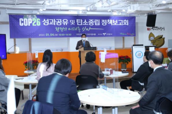[한국뉴스타임=편집국] 고양시가 지난 4일 고양인재교육원에서 ‘COP26 성과공유 및 탄소중립정책보고회’를 개최했다.