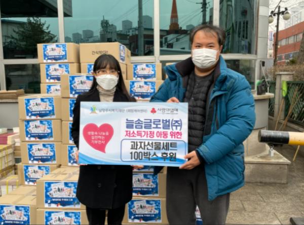 [한국뉴스타임=편집국] 남양주시는 지난 연말 늘솜글로벌 주식회사가 저소득 가정 아동들을 위해 과자선물세트 100개를 남양주시복지재단(대표이사 우상현)에 전달했다고 5일 밝혔다.