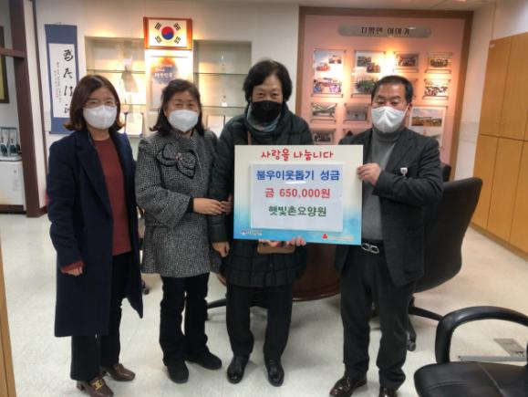 [한국뉴스타임=편집국] 지난 5일 양평군 지평면 햇빛촌 요양원은 지평면사무소를 방문해 장학금 65만원을 지정 기탁했다.