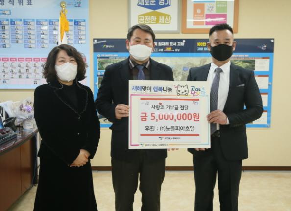 [한국뉴스타임=편집국] 고양시 덕양구는 지난 4일, 새해를 맞아 ㈜노블피아호텔이 저소득 가정을 위한 새해 첫 성금 500만원을 기부했다고 밝혔다.