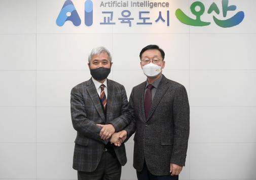 [한국뉴스타임=편집국] 김덕섭 경기도남부자치경찰위원장과 곽상욱 경기도시장군수협의회장은 지난 5일 오산시청 시장실에서 치안정책 협력을 위한 간담회를 실시했다.