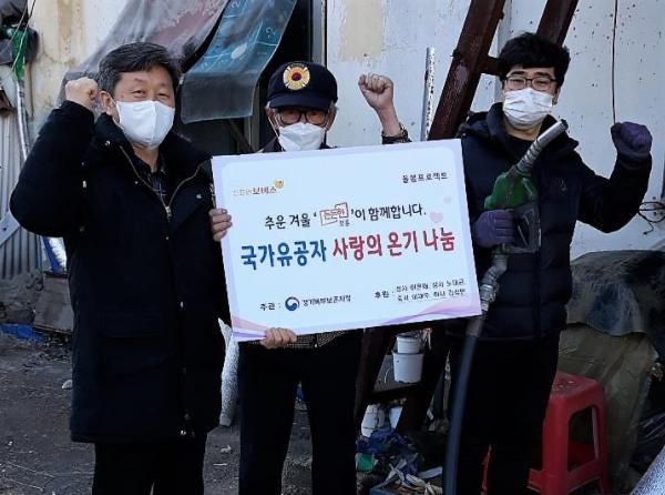 [한국뉴스타임=편집국] 경기북부보훈지청은 1월 6일 육군 제2기갑여단 이은재· 노대균 상사, 이재우 중사, 김정민 하사의 후원으로, 동절기 난방에 어려움을 겪고 있는 6.25참전유공자 임?? 어르신에게 “난방용 등유”를 전달해 드렸다.
