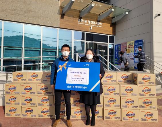 [한국뉴스타임=편집국] 파주시 금촌1동은 지난 5일, ‘뚜레쥬르 파주금촌역점’에서 관내 어려운 이웃들을 위해 라면 100상자를 기탁했다고 밝혔다.