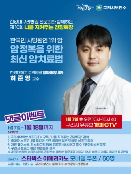 한편, 1월 건강특강 시청 후 좋은 질문 댓글을 남기신 시민을 대상으로 추첨을 통해 50명에게 커피 모바일 쿠폰이 지급되는 이벤트도 진행할 예정이다.