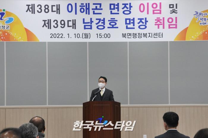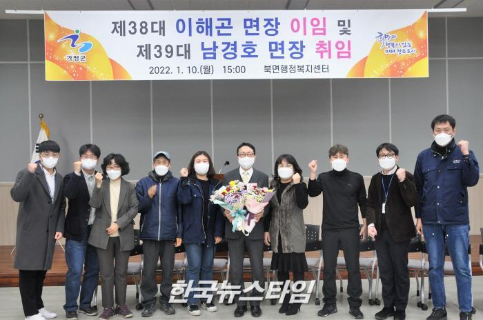 [한국뉴스타임=이명수기자] 가평군(군수 김성기) 정기인사발령에 따라 10일 오후 가평군 북면, 제38대 이해곤 면장·제39대 남경호 면장 이·취임식 개최되었다.