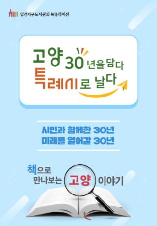 북큐레이션은 '고양시 시승격 30년 이야기', '사진으로 보는 고양의 문화유산', '고양시 길라잡이' 등 고양 관련 도서 20여권을 선별하여 전시한다. 고양의 이야기와 변화하는 고양의 다양한 모습을 책으로 만나보는 시간이 될 예정이다.