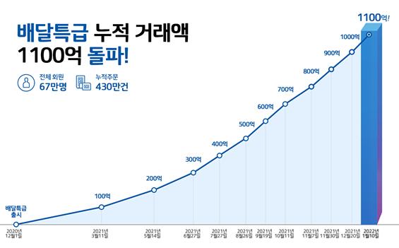 앞서 지난해 12월 31일 기준 1,057억 원으로 한 해를 마무리한 배달특급은, 올해에도 단골 고객들의 꾸준한 선택으로 매출 상승을 이어가고 있다. 누적 주문은 430만 건, 누적 회원 수는 67만 명을 기록 중이다.