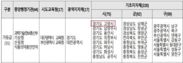 시는 75개 시 단위 기초자치단체 중 상위 8개의 시로 선정되며‘가’ 등급을 달성해 최우수 기관으로 선정됐다. ‘가’ 등급은 306개 행정기관 중 평가 성적 상위 10% 기관에 주어지는 등급이다. 이로써 시는 정부 표창과 함께 특별교부세 등 재정인센티브를 지원받게 된다.