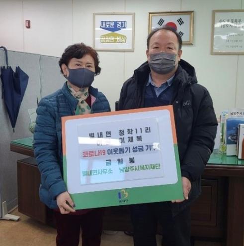 [한국뉴스타임=편집국] 남양주시 별내면은 지난 13일 청학11리 이제복 이장이 코로나19 확산으로 어려움을 겪고 있는 이웃을 위해 남양주시복지재단에 금일봉을 전달했다고 밝혔다.