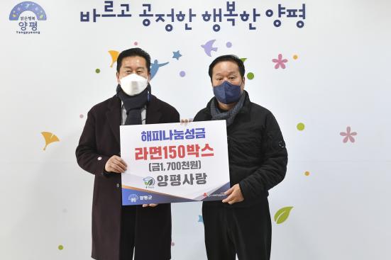 매년 주거취약계층 집수리 봉사활동, 매년 물품 기탁 등 지역내에서 다양한 활동으로 나눔을 실천하고 있는 양평사랑은 라면 150박스를 기탁했으며, 양평읍 백안4리는 마을에서 매년 진행하는 어려운 이웃들의 따뜻한 겨울나기를 위한 사랑의 연탄 모으기 성금을 기탁했다.