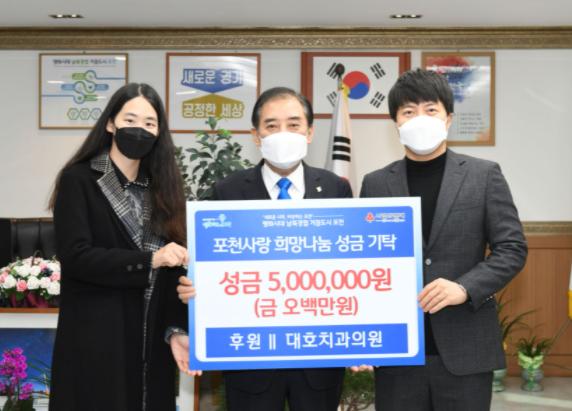[한국뉴스타임=편집국] 대호치과의원은 저소득 청소년들의 든든한 후원자가 되고 싶다며 성금 500만 원을 경기사회복지공동모금회를 통해 포천시에 기탁했다.