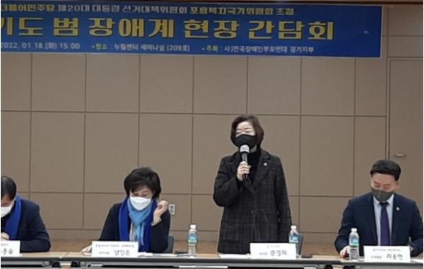 [한국뉴스타임=편집국] 경기도의회 문경희 부의장(더민주, 남양주2)은 18일, 더불어민주당 제20대 대통령 선거대책위원회 포용복지국가위원회 초청 경기도 범 장애계 정책간담회에 참석했다.