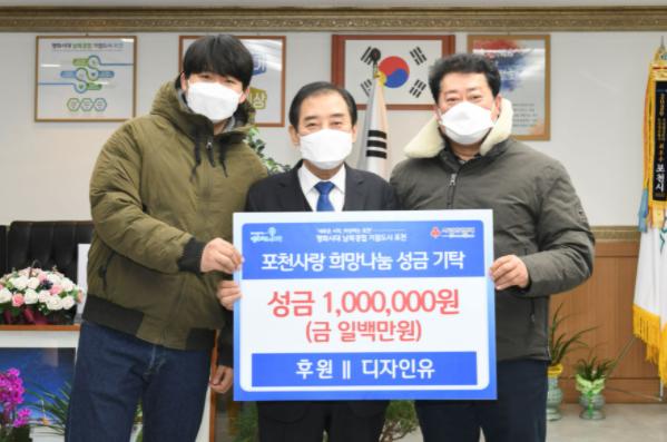 [한국뉴스타임=편집국] 디자인 유(대표 김진선)는 사각지대에 있는 취약계층 지원에 힘이 되고 싶다며 성금 100만 원을 경기사회복지공동모금회를 통해 포천시에 기탁했다.