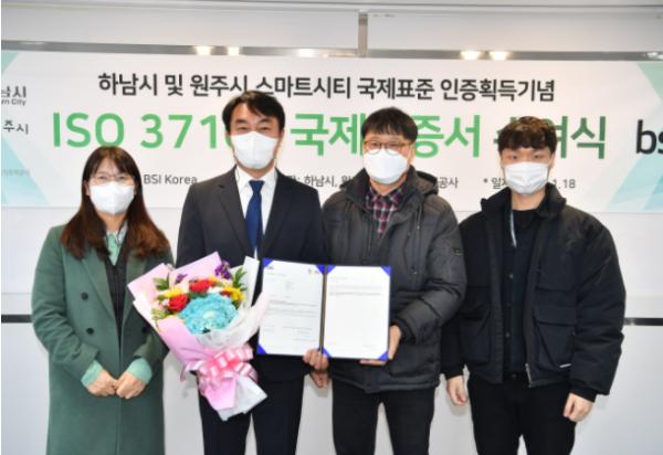 [한국뉴스타임=편집국] 하남시는 영국표준협회(BSI)로부터 스마트시티 국제표준(ISO 37106) 인증도시로 선정돼 18일 인증서를 수령했다고 밝혔다. 이에 따라 ‘하남형 스마트시티’의 성공적 구축을 위한 기반 마련에 청신호가 켜졌다.