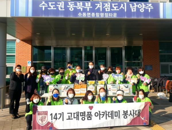 [한국뉴스타임=편집국] 남양주시 수동면은 지난 17일 고대 명품 아카데미 14기 봉사대가 지역의 어려운 이웃을 위해 설맞이 후원 물품을 전달했다고 밝혔다.