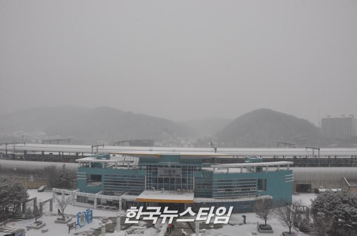 [한국뉴스타임=이명수기자] 수도권에 대설주의보가 발령되면서 가평군은 시간당 1~2cm의 눈이 내리고 있다.