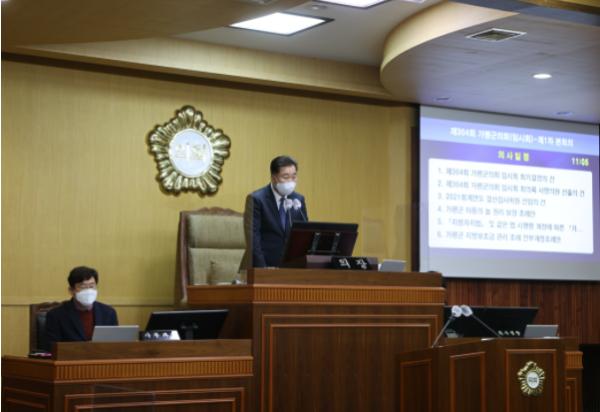 [한국뉴스타임=편집국] 가평군의회는 1월 19일 오전 11시에 제304회 가평군의회 임시회 개회식 및 제1차 본회의를 열고 1월 27일까지 9일간의 일정으로 회기에 들어갔다.