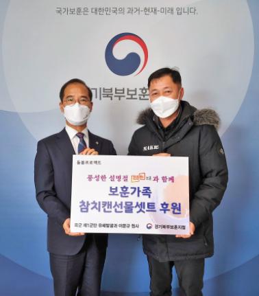 경기북부보훈지청(지청장 한국성)은 1월 19일 육군 제1군단 유해발굴과 이문규 원사와 ’관내 보훈가족 25가구를 위한 후원물품(참치선물세트) 전달식’을 가졌다.