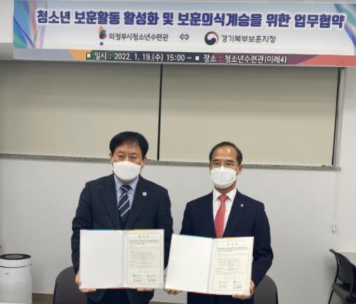 경기북부보훈지청(지청장 한국성)과 의정부청소년수련관(관장 조경서)는 1월 19일, 의정부시청소년수련관에서 청소년 보훈활동 활성화 및 보훈정신계승을 위한 업무협약(MOU)를 체결하였다.