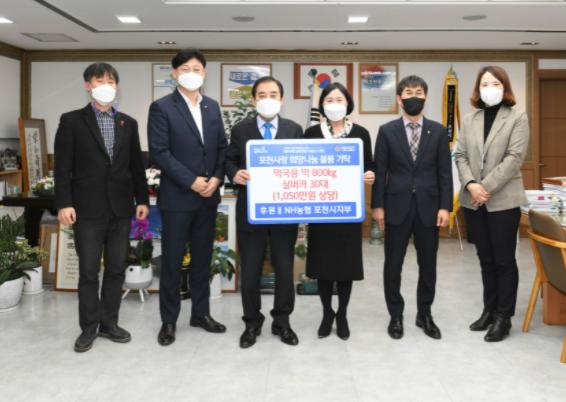 NH농협은행 포천시지부는 지난해 3회에 걸쳐 포천시 어려운 이웃을 위해 쌀과 음식 꾸러미 세트, 양파빵 교환권을 지원하는 등, 지속적인 공헌활동을 펼치고 있다.