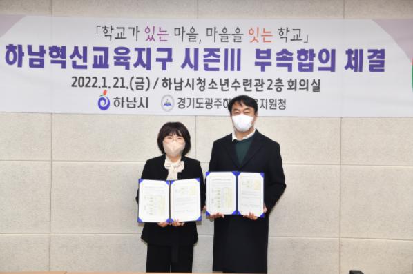 [한국뉴스타임=편집국] 하남시는 지난 21일 광주하남교육지원청과 함께 45억원의 예산을 편성해 올해 하남혁신교육지구 시즌Ⅲ를 추진하는 부속합의를 체결했다고 밝혔다.