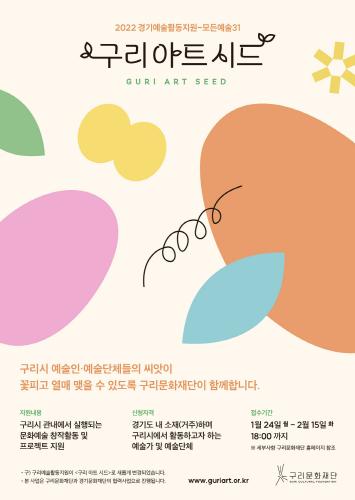 [한국뉴스타임=편집국] 구리문화재단은 2022년 경기예술활동지원 ‘구리 아트 시드’에 참여할 예술인·예술단체를 모집한다.
