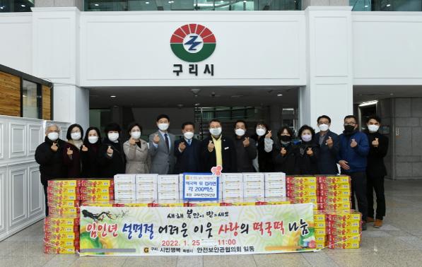 25일에는 구리시안전보안관에서 떡국떡(2kg) 및 컵라면(6개입)을 각 200박스씩, 참사랑나눔봉사회에서도 떡국떡(2kg) 100상자 전달했다.