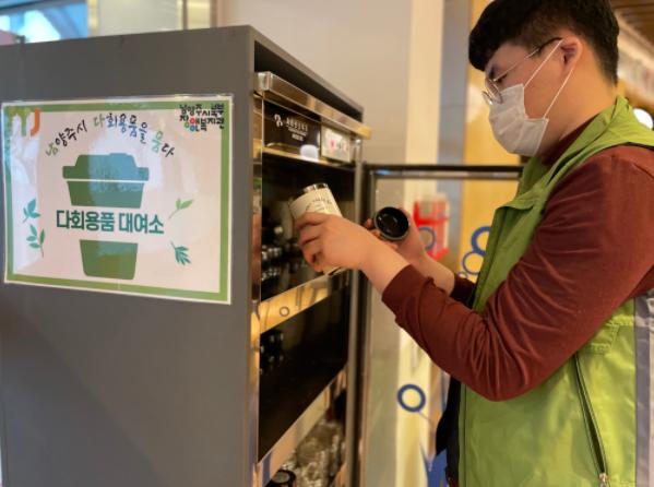 시는 올해 1월부터 기관 내 컵 환수대 및 세척기?소독기 등을 구비하고 ‘다회용품 세척·관리’ 장애인일자리사업과 연계해 본격적으로 운영을 시작했다.