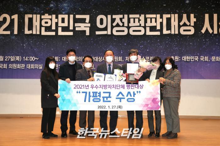 [한국뉴스타임=가평] 27일 가평군은 대한민국의정평판대상시상위원회 및 27개 사회단체에서 주최하는 2021 의정평판대상에서 대한민국우수지방자치단체평판대상을 수상하였다고 밝혔다.