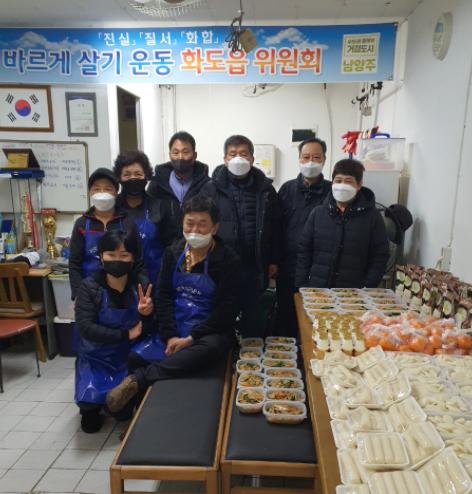 [한국뉴스타임=편집국] 바르게살기운동 남양주시협의회 화도읍위원회는 지난 27일 설을 앞두고 어르신들께서 명절에 드실 음식을 준비해 반찬 나눔 봉사 활동을 진행했다.