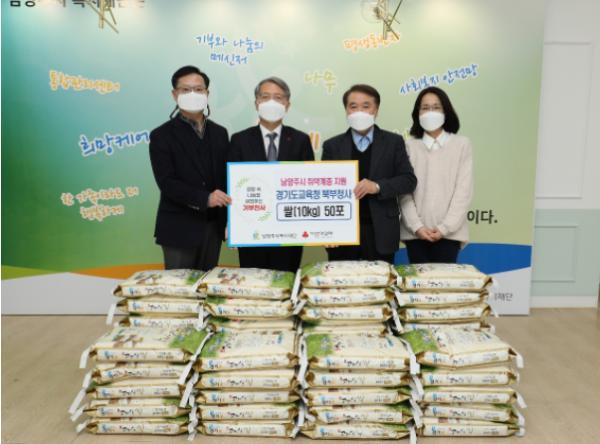 [한국뉴스타임=편집국] 경기도교육청 북부청사 직원들이 민족 최대 명절인 설을 앞두고 나눔 문화 확산과 이웃사랑 실천을 위해 남양주시복지재단에 위문품을 28일 전달했다.