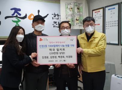 자활사업 참여자인 김경윤·김현정·백경욱·이경화 씨는 지난 1월 27일 설을 맞아 신장2동에 거주하는 독거 청장년 및 한부모 가족에게 전해 달라며 ‘떡국 밀키트 10세트(20만원 상당)’를 기탁했다. 이들은 신장2동에서 자활사업으로 도시락 및 반찬을 판매하는 ‘오레시피’를 운영하고 있다.