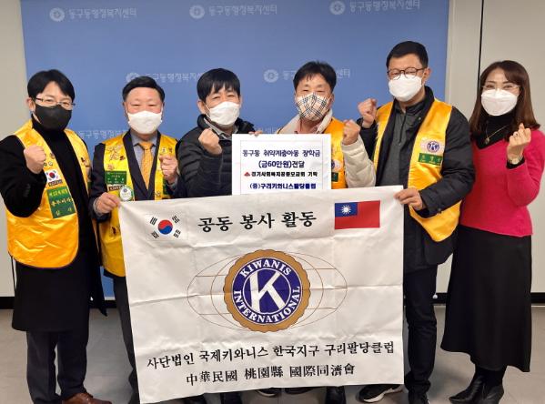 이날 국제키와니스 구리팔당클럽에서 기부한 사랑의 장학금 60만원은 경기사회복지공동모금회로 지정 기탁되어 동구동 취약계층 아동 3명에게 배분 예정이다.