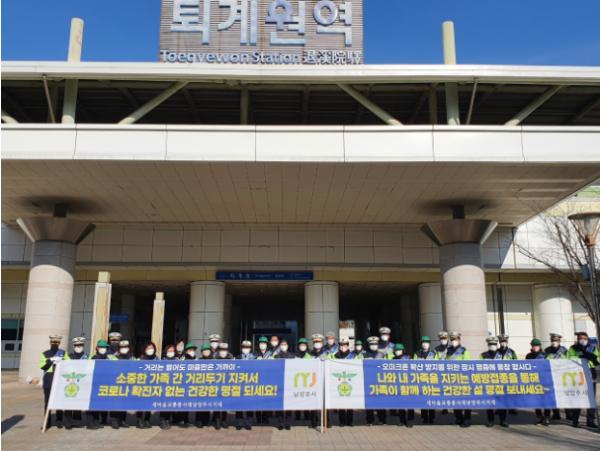 [한국뉴스타임=편집국] 새마을교통봉사대남양주시지대는 지난달 29일 퇴계원역 앞에서 설 명절 코로나19 확산 방지 캠페인을 실시했다.