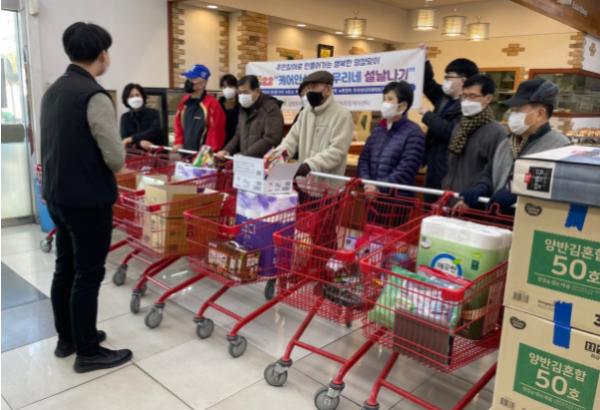 이번 행사를 위해 우리네식자재마트(대표 김상만)에서는 지난해에 이어 입주자들이 마음 따뜻한 명절을 보낼 수 있도록 인당 5만 원의 마트 상품권을 후원했으며, 입주자들은 이웃 주민인 마을활동가들과 함께 만든 복주머니를 들고 식자재마트를 방문해 명절에 필요한 물품들을 구입했다.