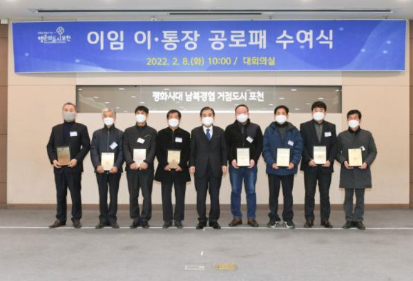 [한국뉴스타임=편집국] 포천시는 8일 시청 대회의실에서 이임하는 모범 이·통장에 대한 공로패 수여식을 가졌다.