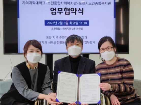 [한국뉴스타임=편집국] 포천종합사회복지관과 차의과학대학교는 지난 8일 포천종합사회복지관에서 지역주민 복지지원과 대학의 사회공헌활동 활성화를 위한 업무협약을 체결했다.