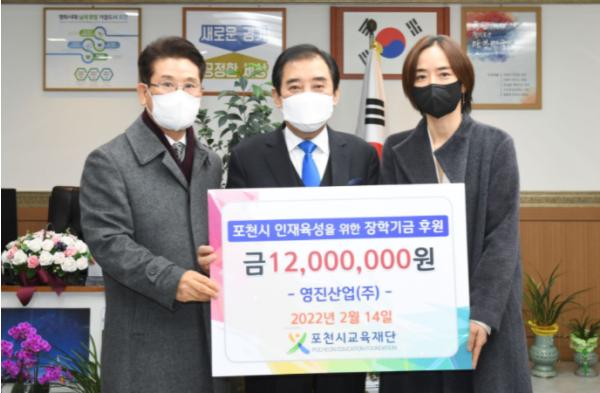 [한국뉴스타임=포천] (주)움트리(대표 김우택)가 14일 (재)포천시교육재단에 장학금 2,000만 원을 기탁했다고 밝혔다.