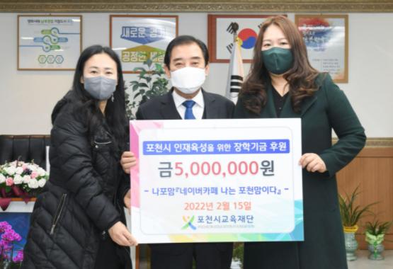 (재)포천시교육재단은 지난 15일 나포맘(네이버카페 ‘나는 포천맘이다’)에서 장학금 5백만 원을 기탁했다고 밝혔다.