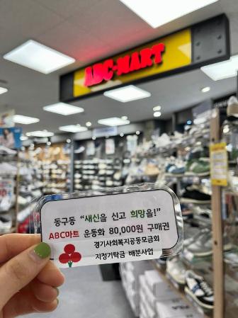 “새신을 신고, 희망을!”사업은 소외된 청소년들을 위해 동구동 주민자치위원회에서 경기도 사회복지공동모금회를 통해 동구동 지역사회보장협의체로 128만 원을 기탁하여 추진됐다.